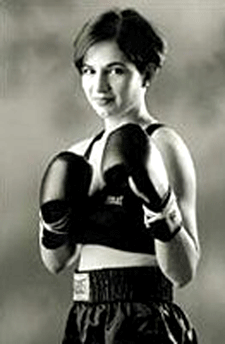 5'3" junior featherweight Jackie Chavez was born on June 1, 1983. She began her career in combat sports as an amateur kickboxer training with Tony Rosales at the Rosales Karate and Kickboxing Academy in Los Lunas, New Mexico, south of Albuquerque. After winning a national kickboxing title at age 16 in a close fight with Audrey Vela of Austin, Texas, Jackie decided to try her hand at professional boxing. She made her pro boxing debut on October 5, 2001 at the Sky City Casino in Acoma, New Mexico, winning by a TKO at 0:29 in the third round over Brandy Leon of Prescott, Arizona. Chavez pressured Leon with combinations throughout the bout and knocked her down with a hard right before it was stopped. Leon fell to 1-5 with the loss. Returning to the Sky City Casino on December 14, 2001, Jackie moved her record to 2-0 (1 KO) with a four-round majority decision over Nicole Gallegos of Albuquerque who fell to 0-2-1.