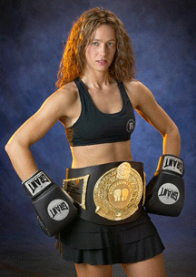 5'3" junior welterweight Sharon "Wild Thing" Anyos from Australia is a boxer, kickboxer and karate competitor. Born on 13 October 1970, she began her love affair with the fight game as a "karate kid". Sharon entered her first tournament when she was six years old, and competed in non-contact karate until she was sixteen.